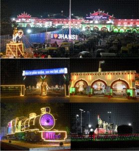 झाँसी मंडल में 77 वें गणतंत्र दिवस के अवसर की पूर्व संध्या पर झाँसी मंडल में उत्सव का माहौल देखने को मिल रहा है। मंडल के प्रमुख रेलवे स्टेशनों को तिरंगे रंग की आकर्षक लाइटिंग से सजाया गया है। इनमें वीरांगना लक्ष्मीबाई झाँसी एवं अन्य रेलवे स्टेशन शामिल हैं। इसके अतिरिक्त झाँसी मंडल कार्यालय को भी विशेष रोशनी से सजाया गया है, जिसमें देशभक्ति और राष्ट्रीय गौरव की भावना झलकती है।